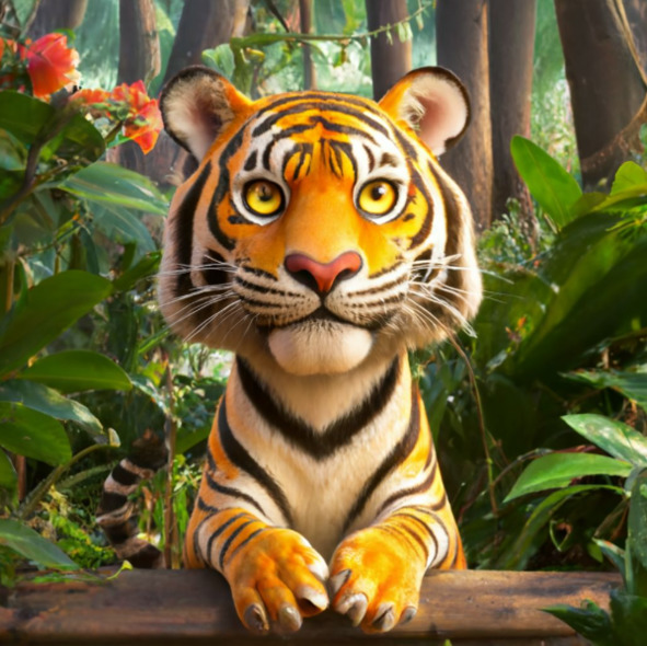 В пышном зеленом лесу, где высокие деревья шептали секреты ветру, а солнечный свет танцевал сквозь листву, жил величественный тигр по имени Пол. Он был известен повсюду своими яркими оранжевыми и черными полосами, своим мощным ревом, который эхом разносился по деревьям, и, самое главное, своим игривым характером и добрым сердцем.