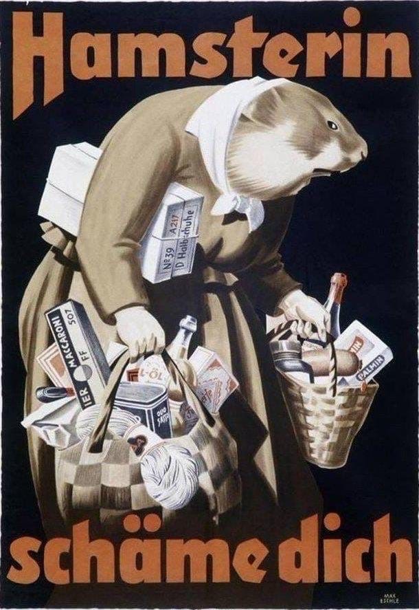 В его комнате на стене всегда висел старый немецкий плакат с надписью «Hamsterin schame dich»(«Хомяку стыдно»), с которым он не расстаётся и до сих пор.
