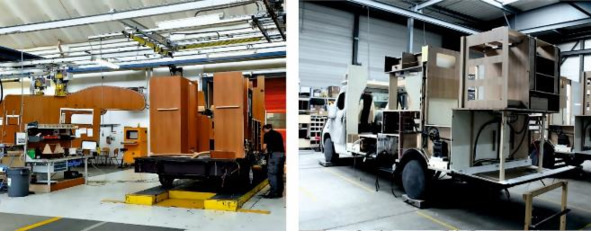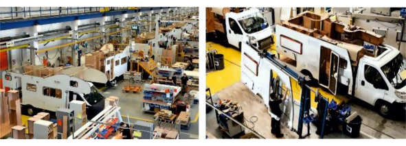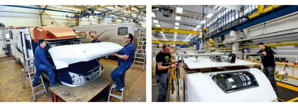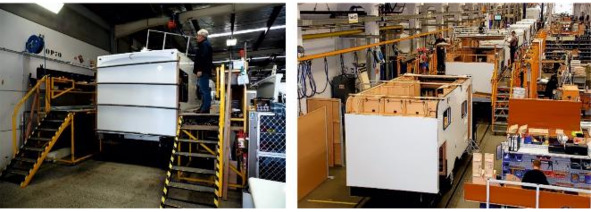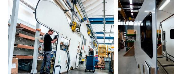 Рисунок 3.15. Слева монтаж стен на заводе бренда «Hymer Group» «Carado», справа установка стен производства «Hobby».