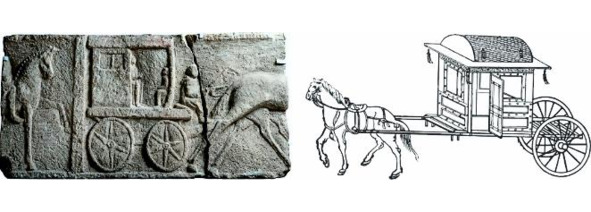 Рисунок 2.1 Слева: Римский рельефный камень из Брукнойдорфа (Bruckneudorf), (местечко Burgenland Австрия)). Справа: китайская повозка императора.