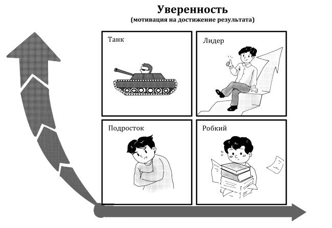 Сразу следует отметить, что эти модели поведения необходимо рассматривать по двум векторам. Первый вектор мотивация на достижение результата, которая объединяет в себе уверенность и силу своей правоты. Второй корректность.