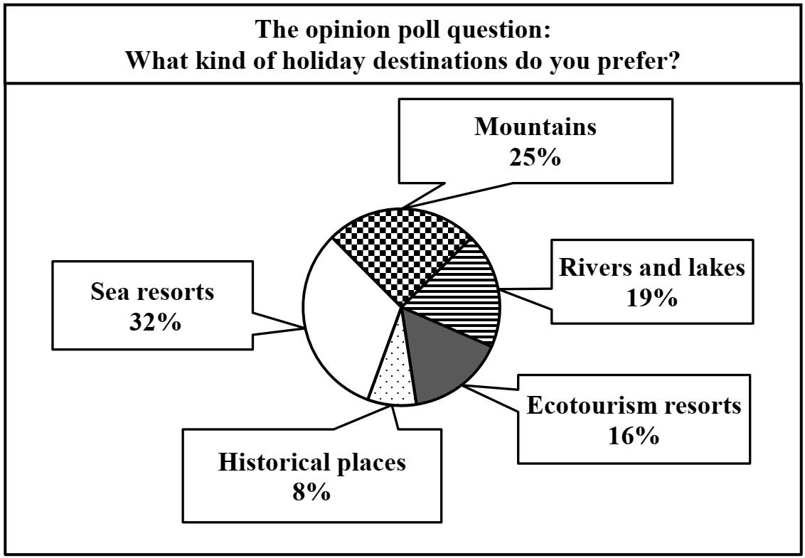 38.2 Imagine that you are doing a project on what holiday destinations are most popular in Zetland. You have found some data on the subject the results of the opinion polls (see the pie chart below).
