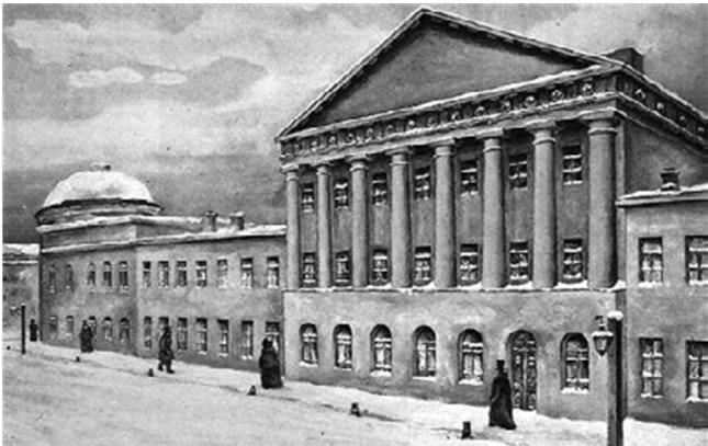 «Математику, механику и физику, продолжает Милютин, преподавал Дм. Матв. Перевощиков, который был вместе с тем директором астрономической обсерватории (впоследствии был академиком); Мих. Александр. Максимович естественную историю; Лев Алекс. Цветаев римское право; русское же законоведение в 5-м классе преподавал Кольчугин, а в 6-м проф. Сандунов; латинскую словесность и римские древности проф. Кубарев; русскую словесность поэт Раич, а в 6-м классе проф. Мих. Троф. Каченовский, который читал и курс эстетики. Священник Терновский преподавал как закон божий, так и греческий язык. Из всех преподавателей наиболее выдавались Перевощиков, Сандунов, Цветаев и Каченовский.