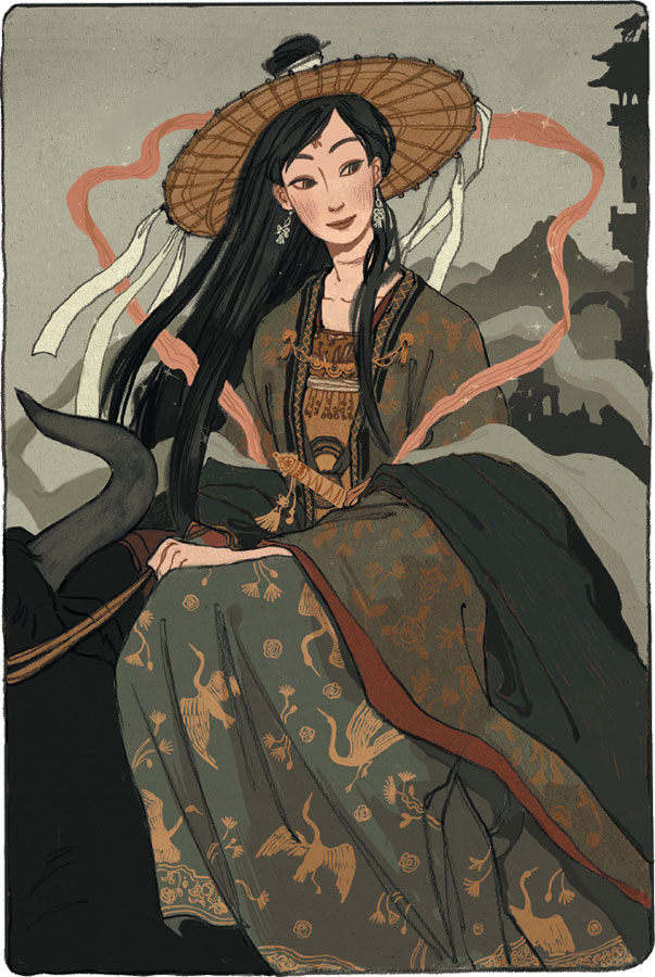 Стоило ему это сказать, как Сюань Цзи вдруг замерла, словно кто-то наложил на неё чары оцепенения. Из темноты послышался размеренный топот копыт, и вскоре взорам собравшихся предстал всадник в зелёных одеждах верхом на чёрном быке. То была девушка с ясными глазами и спокойным выражением лица, подбородок её был высоко поднят, словно она вглядывается вдаль. Пэй Мин разомкнул окровавленные губы и выдохнул: