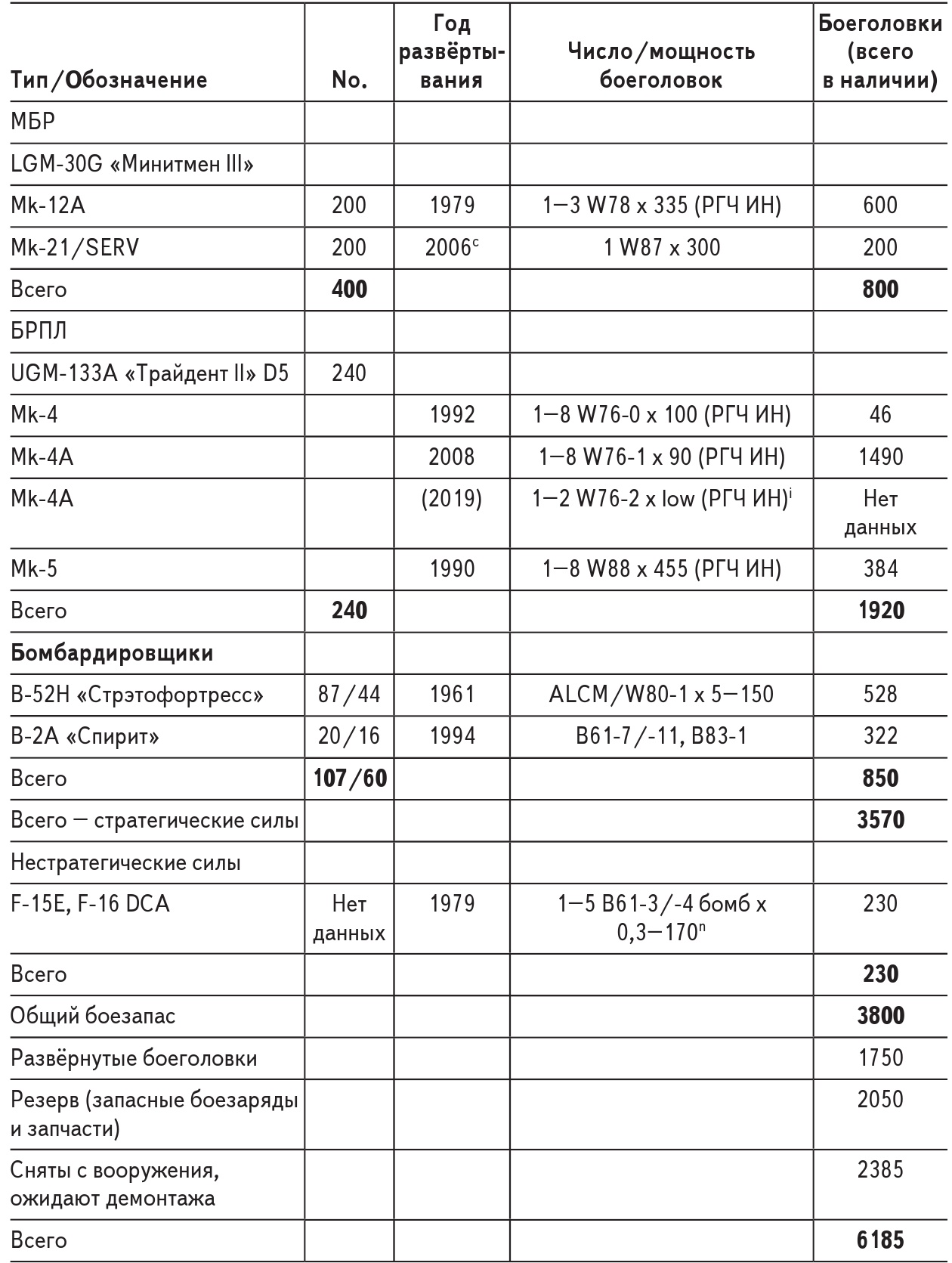 В Вашингтоне утверждают, что эти планы использования боеголовок БРПЛ в ходе локальных конфликтов объясняются превосходством России (и Китая) в нестратегических ядерных вооружениях (по американским данным, по состоянию на 2019 г. у США имелось 230 ядерных боеголовок такого типа, а у России 1820)44.