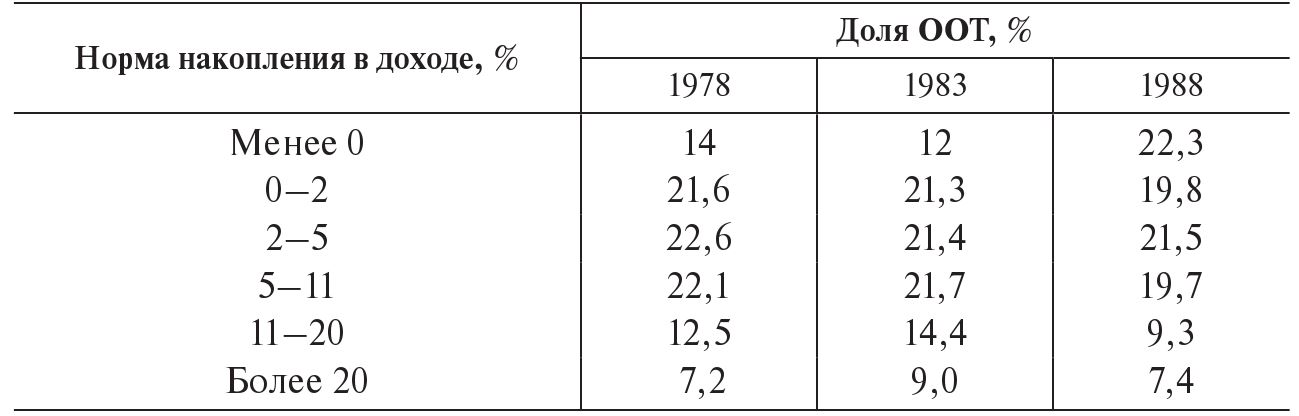 Как видно из таблицы 7, аккумулятивная способность ООТ значительно отстает от аккумулятивной способности хозяйства в целом и, в частности, банков. Откуда же берутся средства для финансирования? Значительную долю инвестиций (20%) составляли иностранные кредиты [Lang, р. 442], и эта доля росла до начала 80-х гг. Частично инвестиции формируются за счет выплаты процентов и роста собственных средств банков. Велика доля сбережений населения в долгосрочном кредитовании: в 1978 г. 49% задолженности ООТ представляли собой сбережения населения. Этих средств, однако, не хватало для покрытия реальных инвестиций. Поэтому здесь вступал в силу механизм дефицитного финансирования, подробно описанный М. Корошичем и Н. Матесом.