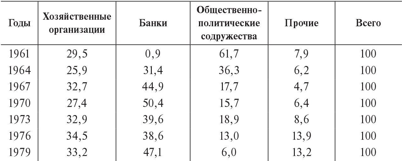 Каким же образом происходило регулирование долгосрочных банковских инвестиций? Так как средняя ставка по долгосрочным кредитам составляла около 4% (1976), а темпы инфляции выше 10%, спрос на кредит превышал кредитные возможности банков. В этих условиях банки применяли метод конкурса проектов по аналогии с системой распределения капиталовложений в общественных инвестиционных фондах (19531963 гг.).