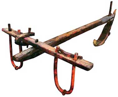 Деревянное рало с одной рукояткой для упряжи из двух волов, которое использовалось сербами до XX века