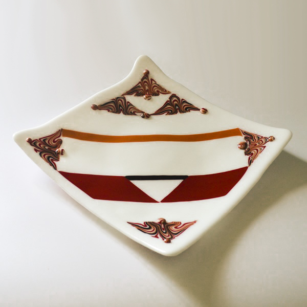 Сама технология сборки такого блюда тоже не часто встречается в работах российских мастеров это техника наборного стекла. В отличие от традиционного фьюзинга, здесь отсутствует основа, на которую обычно наносится орнамент. В данной технике рисунок одинаково прекрасен и с верхней, и с нижней стороны.