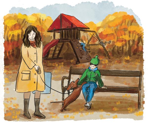 Мальчик сидел на скамейке и мечтал о собаке, как вдруг к нему подошла молодая девушка, рядом с которой весело виляла хвостом очаровательная такса.
