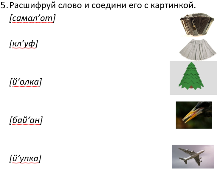 5.Запиши транскрипцию слов.