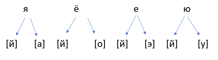 Буквы: Я, Е, Ё, Ю.
