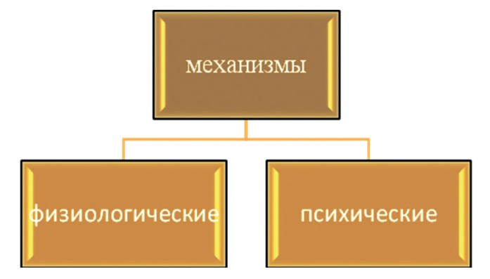 Данные механизмы условно разделяют на физиологические и психические (рисунок 1).