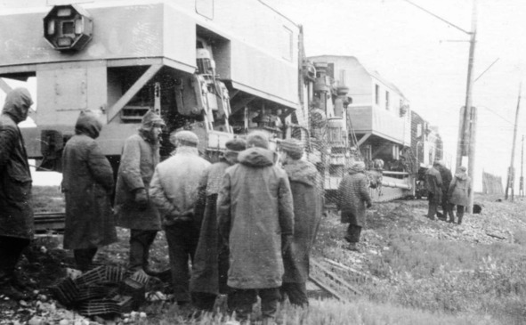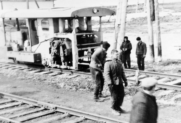 Самая громогласная шпалоподбоечная машина. Второй слева будущий известный академик Игорь Фомич Щеголев