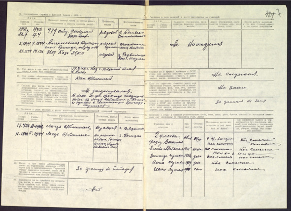 После пленения я находился в г. Вязьма в лагере военнопленных. Номера не знаю. Содержали нас до конца сентября месяца 1942 г., где работали на разных работах в городе. Из Вязьмы нас отправили в г. Полоцк Белорусской территории, где находился до 3 мая 1944 года в лагере военнопленных, работали на лесозагатовках и по очистке разного мусора. А с 3 мая 1944 года из Полоцка с работы я совершил побег и ходил около двух недель и вышел к партизанам в Алексеевскую бригаду, где командиром был Алексеев имя и отчество его не знаю. В партизанах я находился до июня месяца 1944 года до соединения со своими войсками».8