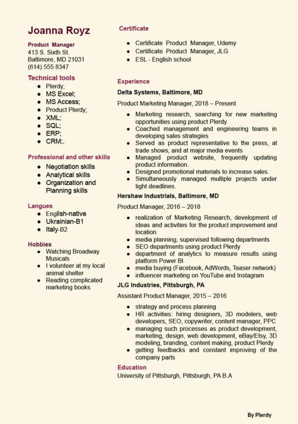 Пример резюме менеджера по продукту от Plerdy
