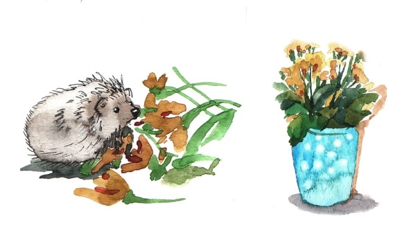 А матушка новые вопросы нам задает: «А вот скажите мне, пожалуйста, а что вы такого должны сделать, чтобы ежик снова начал фырчать, а у цветка начали лепестки отваливаться? А от чего бы ежик стал радоваться, иголочки его все собрались, а цветок снова распустился и стал бы вкусно пахнуть? Что им помогает вот так себя чувствовать?»