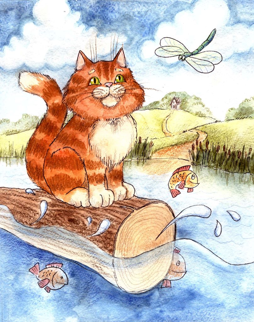 Маленький котик сидел у реки. Лучики солнца весело играли, поблескивая в воде на камушках. Котик, как завороженный, смотрел на реку, которая шумела, бурлила, ударялась о камни. Где его мысли? О чем он мечтал? А котик думал о далеких краях, о реке, которая скрывается там, за поворотом. Он мечтал путешествовать, но очень боялся.