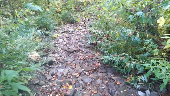 Ручей первое время принял нас не гостеприимно. Легкая щелевидность не требует комментариев в чем она заключается. Камни скользили, а бортики ручьев не позволяли идти по сухим краям. Это длилось не так долго, чтобы заплакал даже я, а Таня вообще с Урала и стойкости ей не занимать. Мы вышли на пологие бережка. Запутываясь в крапиве вышли на светлое, чистое место, которое если обтоптать, то вполне сойдет за место для обеда, а так как время уже и было обеденное, то мы так и поступили. Врезалось в память, что пока вода нагревалась, Таня умудрилась найти лиану актинидии с ягодами и ободрать их, не забыв принести мне несколько штук в знак своего расположения. Больше плодоносных лиан мы не встречали. Зато неплохо плодоносили наши рюкзаки из которых вываливались бутерброды с колбасой и другим вкусным фаршем.