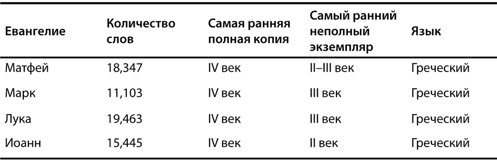 Редко кто ценит тот факт, что до нас дошли целых четыре Евангелия об Иисусе. Это огромное количество материала о любом человеке того периода. По сути, мы имеем столько же ранних источников о жизни и учении Иисуса, который жил на задворках Римской империи, сколько о деятельности и речах Тиберия, который был императором во время общественного служения Иисуса. Жизнь Тиберия (правил в 1437 гг. н. э.) и жизнь Иисуса зафиксированы в четырех основных источниках, как показано в таблицах 2.1 и 2.2.[24]