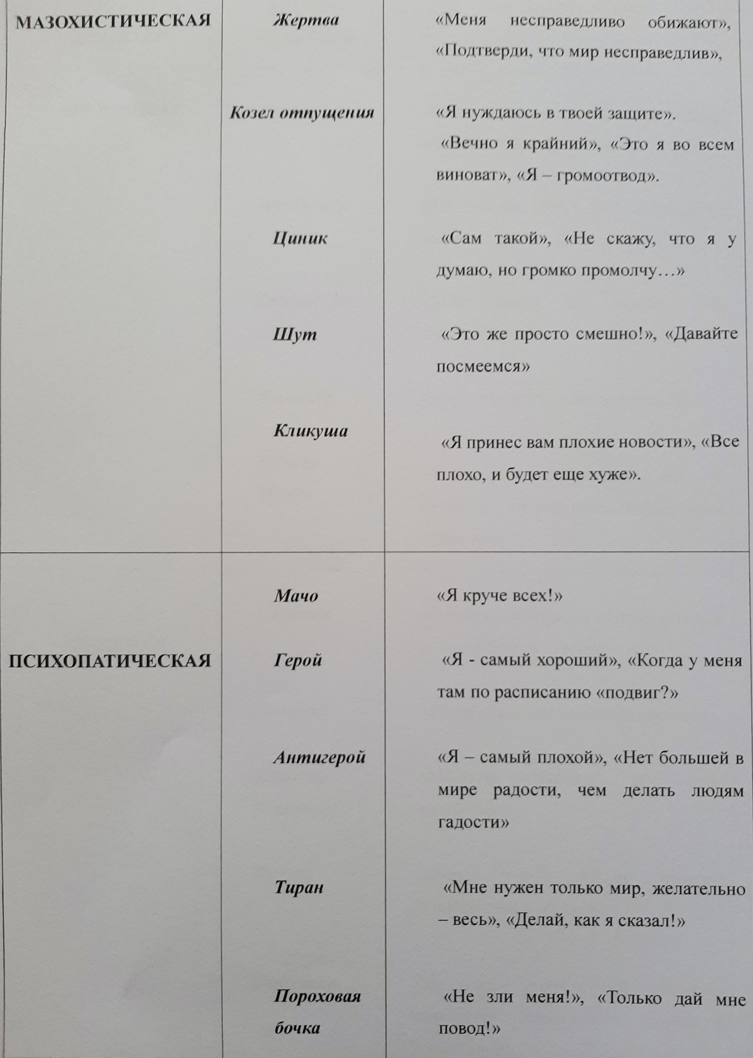 Далее рассмотрим подробно каждый из этих психологических типов и сценарные роли.