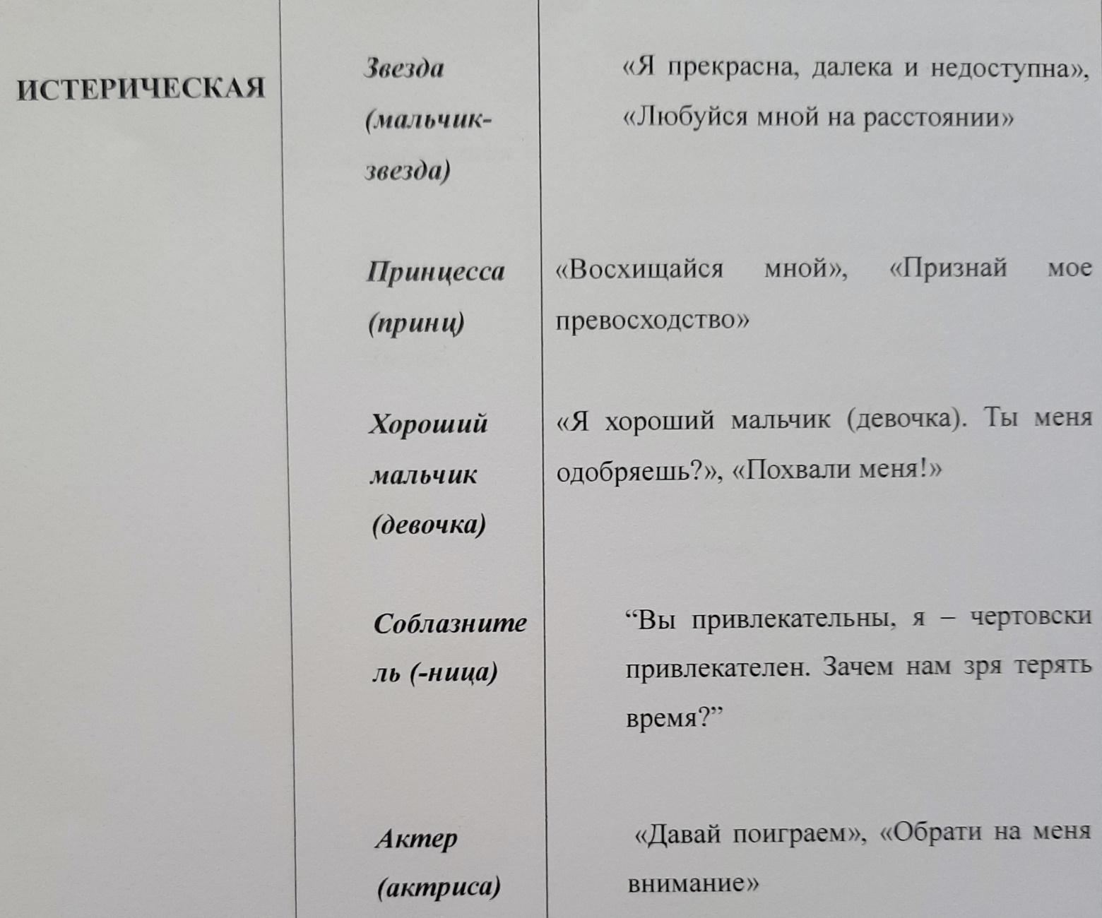 Я предлагаю Вам систему из 5 структур характера. Под теми или иными названиями эти 5 структур характера фигурируют в разных школах ТОП (и имеют корни в психоанализе). Во многом мне помог опыт преподавания: чтобы донести до студентов материал о структурах характера в ТОП в целом, а не в отдельных школах, приходилось проводить постоянный анализ теорий отдельных школ ТОП и их сравнение. Это не моя новаторская система, я лишь привела к определенной системе классификации идеи, высказанные другими специалистами и немного добавила свои.