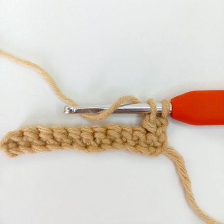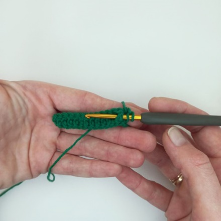 1. Крючок вводим под обе стенки одного основания столбика предыдущего ряда