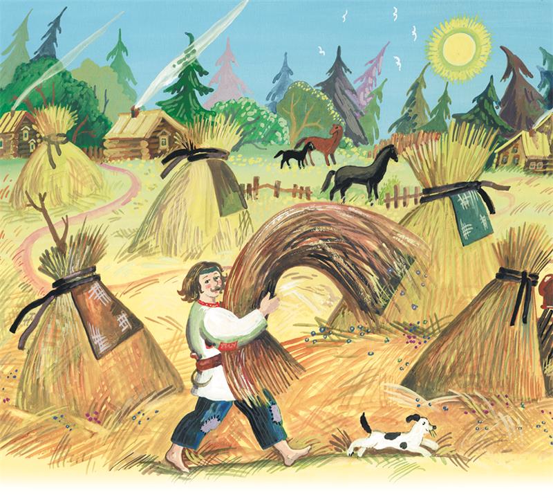 А на другом конце в своём уголке жил честной работник. По утрам он двор убирал, вечерами скот пасал в беспрестанных был трудах.