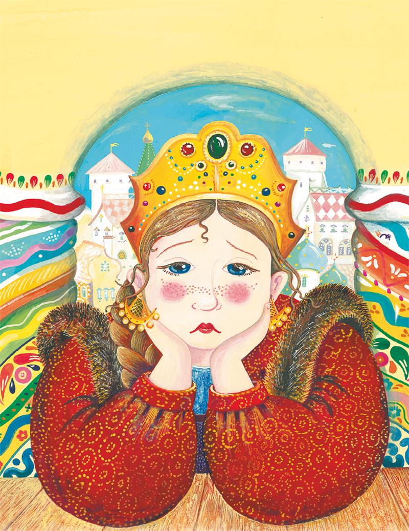 В царских палатах, в княжьих чертогах, в высоком терему красовалась Несмеяна-царевна. Какое ей было житьё, какое приволье, какое роскошье! Всего много, всё есть, чего душа хочет, а никогда она не улыбалась, никогда не смеялась, словно сердце её ничему не радовалось.