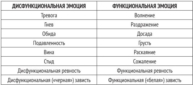 Проводимое в РЭПТ качественное различие между функциональными и дисфункциональными отрицательными эмоциями подчеркивает важность негативных эмоций в жизни человека, поскольку они сообщают о наличии неудовлетворенных желаний и целей или актуальной проблемы, на которую стоит обратить внимание. Кроме этого, здоровые негативные эмоции помогают человеку адаптироваться к сложным жизненным обстоятельствам или даже изменить их, а также позволяют получать и максимизировать желаемое и избегать и минимизировать желательное. Как замечают А. Эллис и И. Беккер, здоровые негативные эмоции «сообщают нам о том, что мы не получаем того, чего нам хочется, что от этого страдают наши планы и цели и что нам лучше бы изменить свой образ жизни или то, что происходит вокруг» (Эллис, Беккер, 2023).