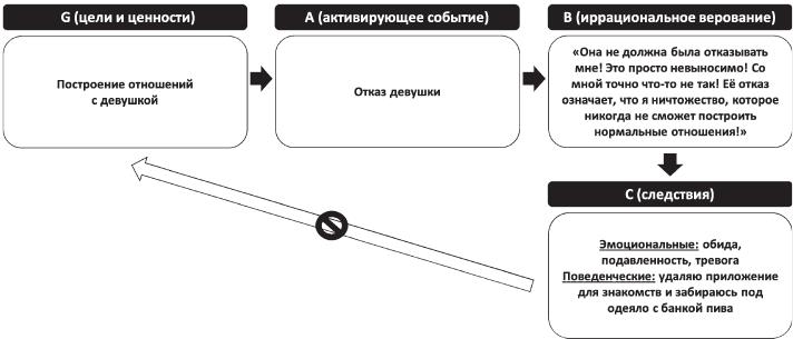 Иными словами, при возникновении неблагоприятного события человек автоматически делает выбор в пользу иррационального верования, которое «затмевает» рациональные позиции, что и приводит к быстрому превращению здоровых и адекватных негативных эмоций в нездоровые и неадекватные. Как замечают А. Эллис и Р. Тафрейт, «если ваши рациональные убеждения сильнее иррациональных и перевешивают их, то обычно вы не очень расстраиваетесь в момент С, а если иррациональные убеждения сильнее, то в момент С вы очень расстроены» (Эллис, Тафрейт, 2021). Так, если человек хочет, чтобы его принимали окружающие, но не настаивает на этом, то будет испытывать здоровые негативные эмоции (например, волнение и досаду), если желаемого принятия со стороны других людей не происходит. При этом здоровые негативные эмоции мотивируют человека к совершению тех или иных действий, направленных на попытки улучшить взаимоотношения с другими. Однако если человек не просто хочет, а требует, чтобы другие люди его принимали, то как ему не тревожиться и не обижаться, когда другие не дают ему то, что «должны»? В таком случае поведение человека станет неадаптивным: например, он будет пытаться всем угодить или вести себя агрессивно.