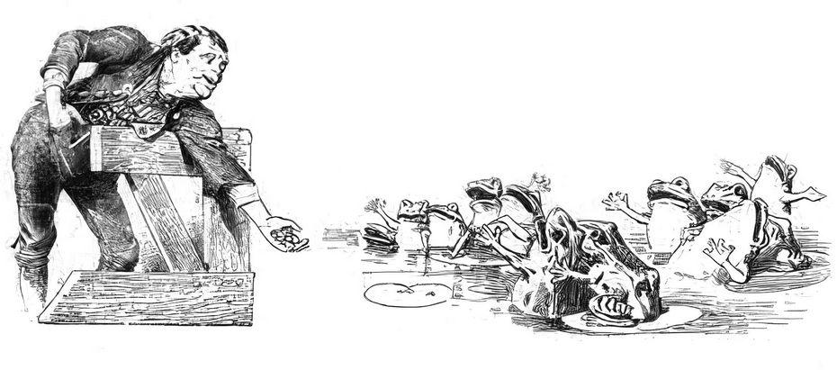 Однако же лягушки не сошлись с ним в счете и опять тянули ту же песню: «Ква, ква, ква!»