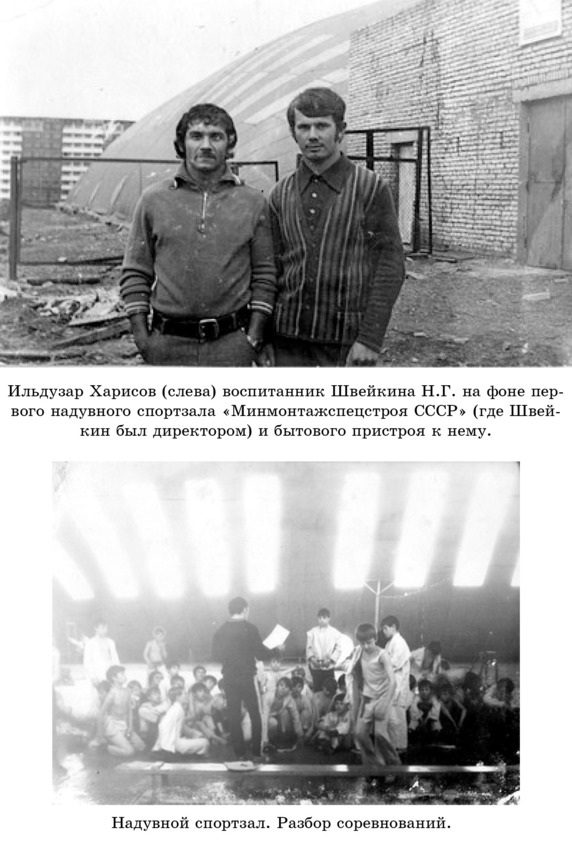 С отоплением была беда! вздыхает Швейкин. Мало того, что вечный запах резиновый, так еще летом духота плюс тридцать, зимой минус тридцать. Тренировались в шапках и рукавицах. Задумали мы как-то обустроить спортзал. Поставили вагончики для тренеров, для раздевалки, навес, гравий насыпали перед входом, чтобы с грязными ногами не заходить. С отоплением появилась такая идея: подогревать воздух, который моторы качают в стены. Каждый раз, идя на тренировку, все приносили половинки, четвертинки кирпичей, песок носили, цемент из всего этого построили пристрой. Но тут у нас приключилось ЧП!