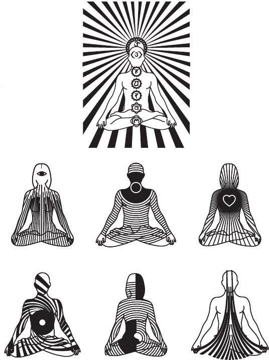 От главного энергетического канала, словно корни лотоса, ответвляются боковые каналы, которые открываются конусообразно на поверхности тел ауры. Их называют чакрами, или энергетическими центрами. Они напоминают склады в каждом хранится свойственная именно этой чакре энергия. Вся эта энергетика находится в постоянном движении. Чакры впитывают в себя универсальную энергию, разлагают её компоненты и затем направляют по энергетическим каналам в нервную систему, в железы внутренней секреции и в кровь, чтобы питать тело.