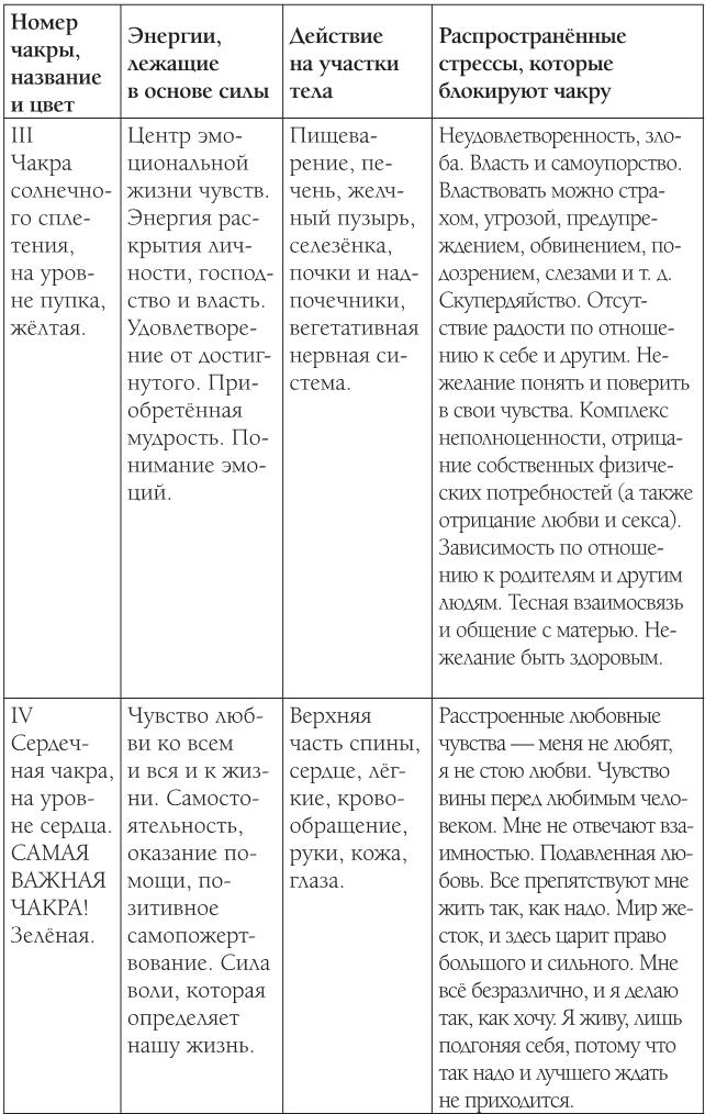 Приведённые на следующих таблицах данные собраны в ходе лечения жителей Эстонии. Проверьте, отвечает ли изложенное на таблицах Вашей болезни. Болезнь возникает тогда, когда чакра скована стрессом и происходит утечка энергии либо блокирован её приток.