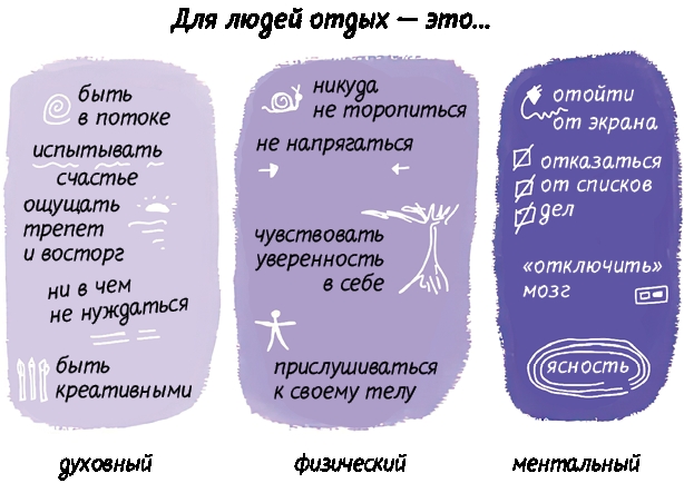 Существует три общепринятых типа отдыха. Подробнее каждый из них мы рассмотрим в главе 4, а пока проведем краткий обзор.