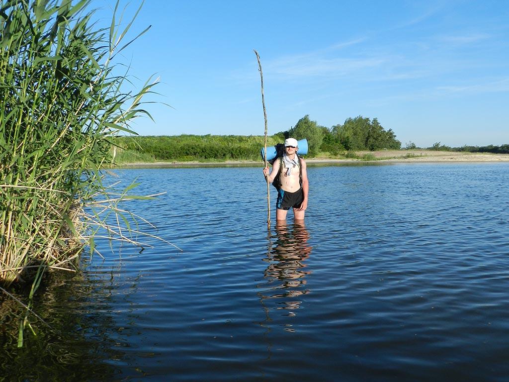 Вспоминали также речушку Сухой Донец, различные диковатые участки и ерики вдоль берега Дона, которые мы проходили вброд. Саша вообще по жизни побаивается большой воды, да и мне было страшновато рухнуть вдруг в какую-нибудь коварную яму. Да еще и с рюкзаком, телефоном и фотоаппаратом в придачу. Медленно шли, осторожно, тыкая впереди палкой на каждом шагу. Но прошли же!