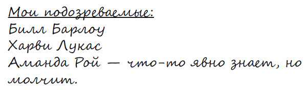 Вернувшись домой и взглянув на листок со схемой расследования, Эйлин дописала: