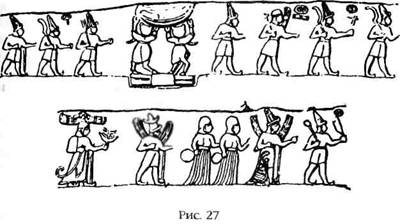 Тот факт, что основой пантеона хеттских богов служило «священное число» двенадцать, подтверждается еще одним памятником, сложенным из кирпичей храмом, который был найден неподалеку от современного города Бейт-Зехир. В нем найдено изображение божественной четы в окружении еще десяти богов всего двенадцать фигур (рис. 29).