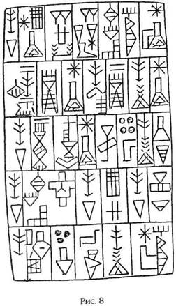 Обнаруженные археологами надписи давали массу информации. Молитвы, в которых к богам обращались с просьбой помочь взойти посевам, а орошаемым растениям дать богатый урожай, свидетельствовали о наличии земледелия и ирригации. Преподнесенная богине чаша с дарственной надписью от «надзирателя над амбарами» указывала на то, что зерно закладывали на хранение, взвешивали и что оно служило предметом торговли (рис. 8).