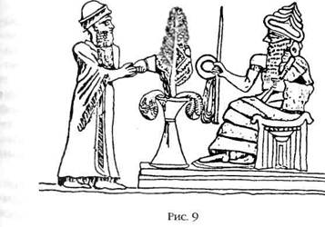 Сооружая «дом Господа Бога» в пустыне, библейский патриарх Моисей действовал в соответствии с подробными указаниями, которые ему дал Господь. Когда царь Соломон строил в Иерусалиме Первый Храм, Бог тоже явился ему во сне, дав «мудрость». Детальный план Второго Храма был показан пророку Иезекиилю в божественном видении мужем, «которого вид как бы вид блестящей меди, и льняная вервь в руке его и трость измерения» За тысячу лет до него правитель Ура Ур-Намму велел изобразить, как бог приказывает ему построить храм, давая соответствующие инструкции и протягивая измерительную рейку и моток веревки (рис. 9).