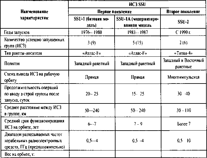 прежней, однако размеры пеленгационных баз новых спутников почти в 2 раза меньше, чем у предшествующих ИСЗ. Это может быть связано с расширением диапазона разведывательных частот до сантиметровой части СВЧ-диапазона, при работе в которой корабельные радиоэлектронные средства используют антенны с узкими диаграммами направленности.