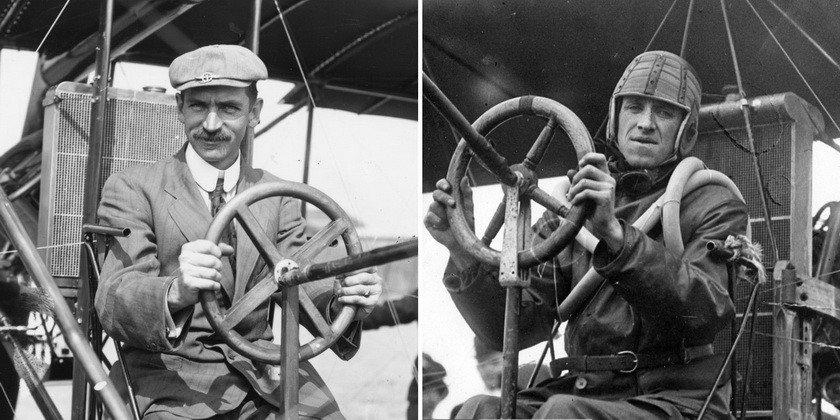 Американские пионеры морской авиации Гленн Кёртисс и Юджин Эли за штурвалами первых аэропланов Кёртисса.