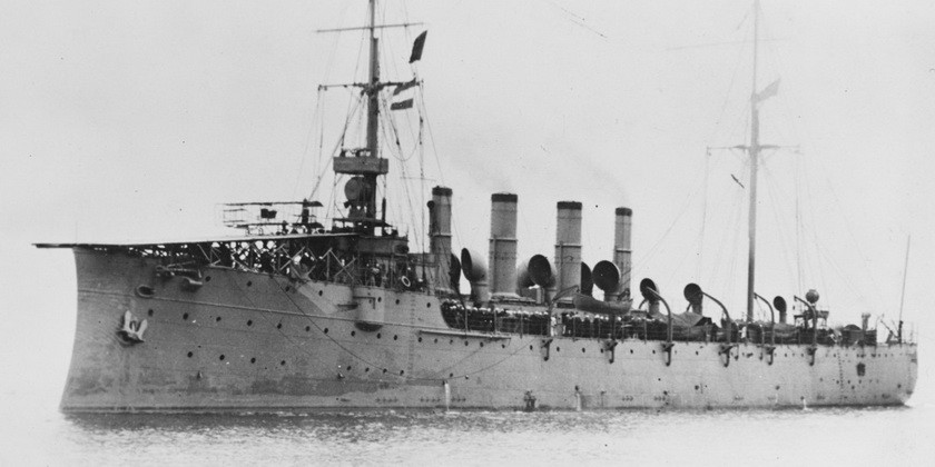 Аэроплан Кёртисса «Модель D» готовится к взлёту с лёгкого крейсера CL-2 «Бирмингем», 14 ноября 1910 года.