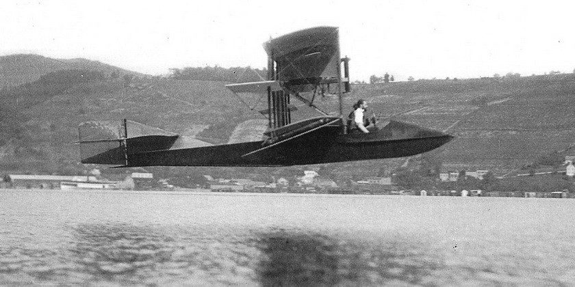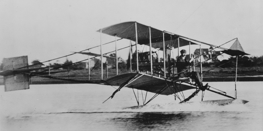 Первый взлёт с воды прототипа летающей лодки Кёртисса «Модель F», июль 1912 года.