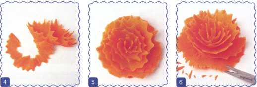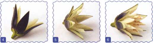 6. Держа нож под углом, вырезать под этими бороздками мякоть в виде лепестков.