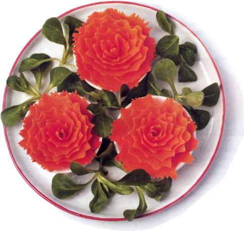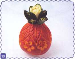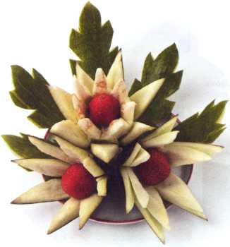 10. Сделать листочки из яблока, как в проекте «Хризантемы». Украсить ими букет.