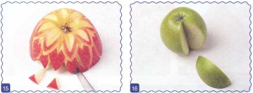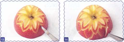 15. Такой же цветочек вырезать из второй половинки яблока.