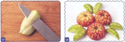 17. Срезать лишнюю мякоть, вырезать из этой дольки листик и сделать еще 5 таких же листиков.