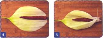 4. По центру лепестка положить красный перец чили это серединка цветка.